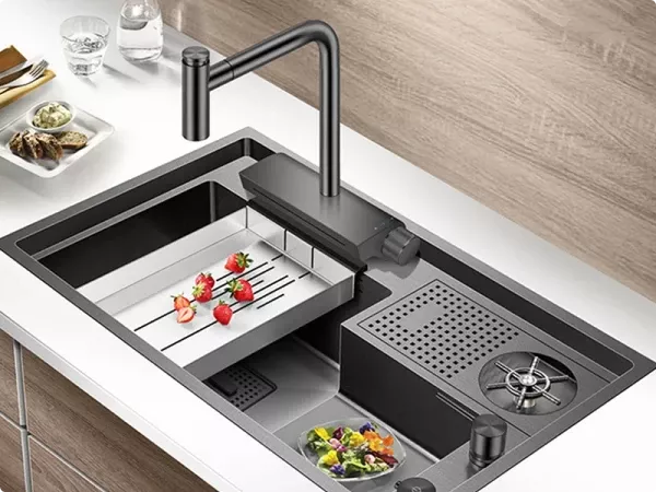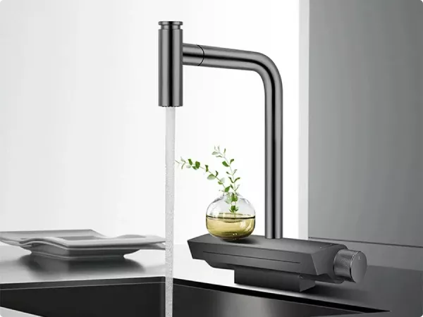 Introducing a sleek addition to your kitchen’s ensemble, a faucet that blends sophistication with functionality. Our Contemporary Black Brass Waterfall Kitchen Faucet with Pull-Out Sprayer is more than just a faucet—it’s a centerpiece that speaks volumes about your taste. With its polished surface and contemporary design, it stands out in any kitchen setting, making it the perfect match for both modern and traditional décor.