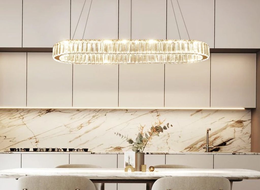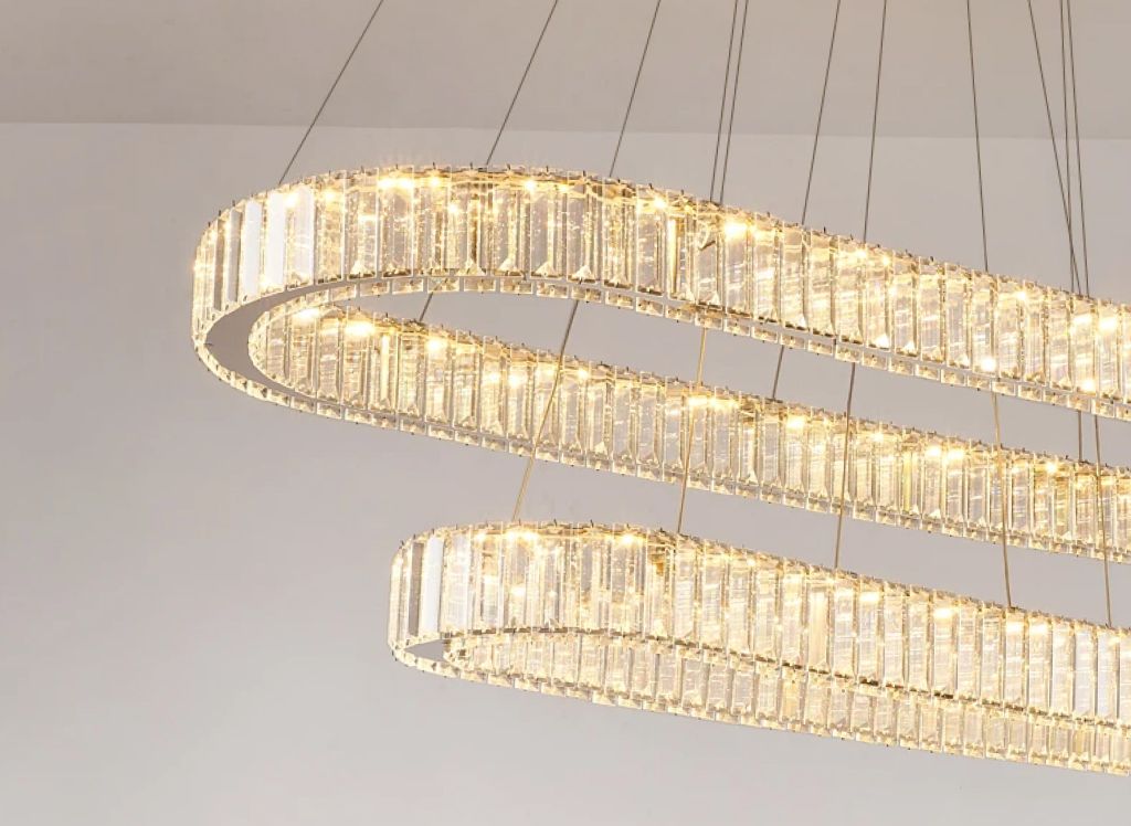 Bring a touch of sophistication to any room with our Contemporary LED Crystal Ceiling Pendant. Designed for modern living, this stylish fixture combines the allure of sparkling crystals with the sleekness of chrome, casting a warm and inviting glow in your dining room, kitchen, or bedroom. Its unique oval ring shape is not just an illumination source, it’s a statement piece that complements your home decor.