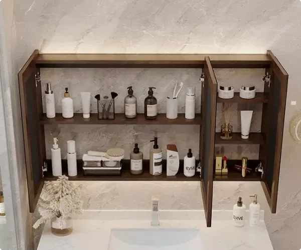 Our Bathroom Mirror Cabinet and Sink Set stands out with its unique blend of modern design and smart technology. The defogging feature ensures a clear reflection at all times, while the dimmable LED lighting lets you set the mood. Ideal for use in bathrooms at homes, villas, or hotels, it adds a touch of elegance and sophistication. The high-quality materials ensure longevity, making it a smart investment for your bathroom.