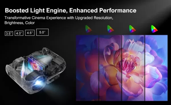 What sets this projector apart is its blend of high-end features and user-friendly design. Boasting a stunning 10,000:1 contrast ratio and 80% NTSC color gamut, it delivers vivid colors and deep blacks for an immersive viewing experience. Its Bluetooth 5.1 compatibility allows you to pair it effortlessly with external speakers for a surround-sound cinema feel. The versatility in connectivity options ensures compatibility with various devices, from laptops to smartphones, making it a hub for all your entertainment needs.